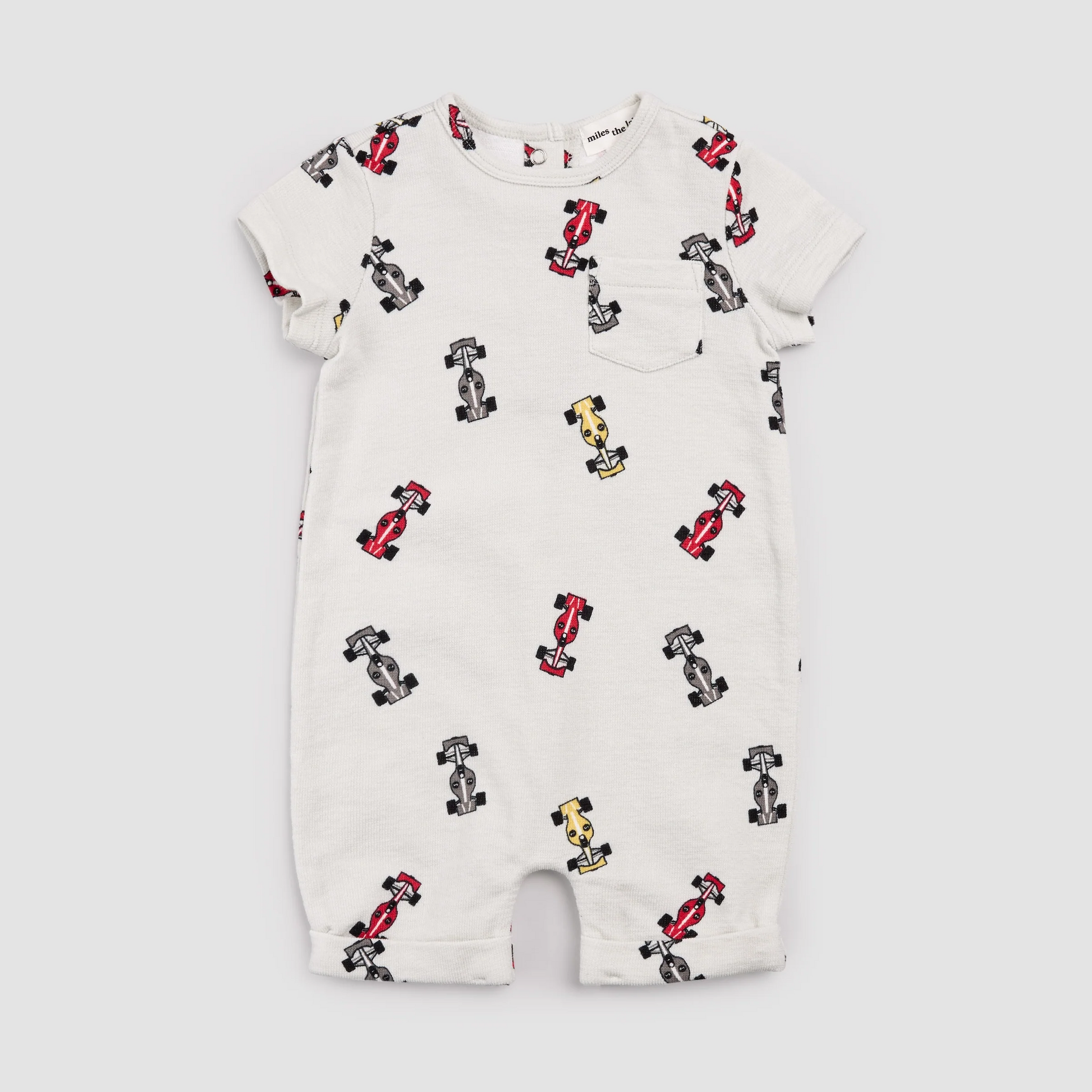 Your little pocket rocket will love this comfy romper printed with the fastest cars around. Made from organically grown cotton slub terry, the romper offers a soft and breathable fit for kids that never run out of energy. With buttons at the back, and poppers along the leg, dressing is a total breeze.