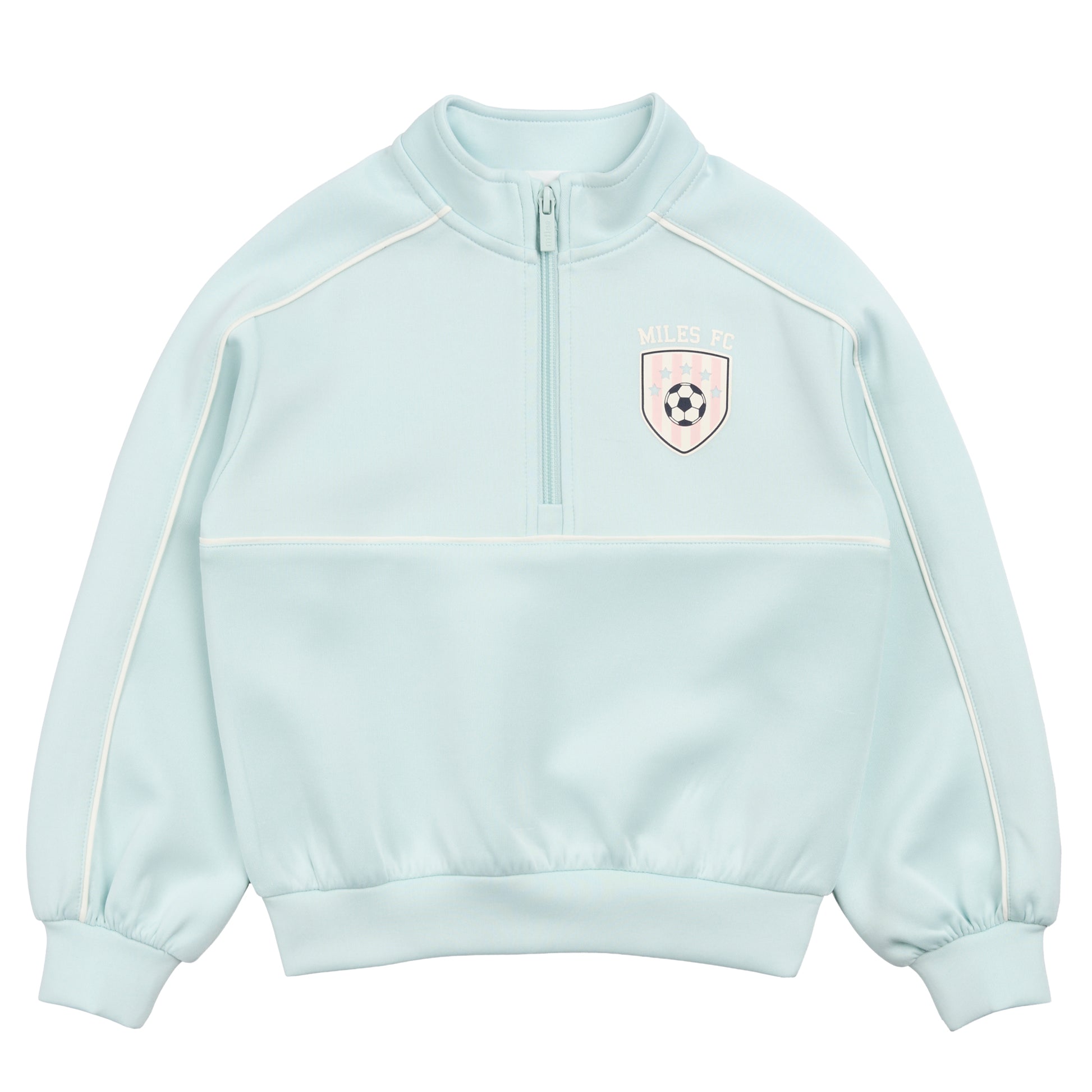 This cool and sporty track jacket in pastel blue is perfect for girls who can do it all. The half-zip, funnel neck gives a sleek finish while offering extra warmth on chilly spring days.