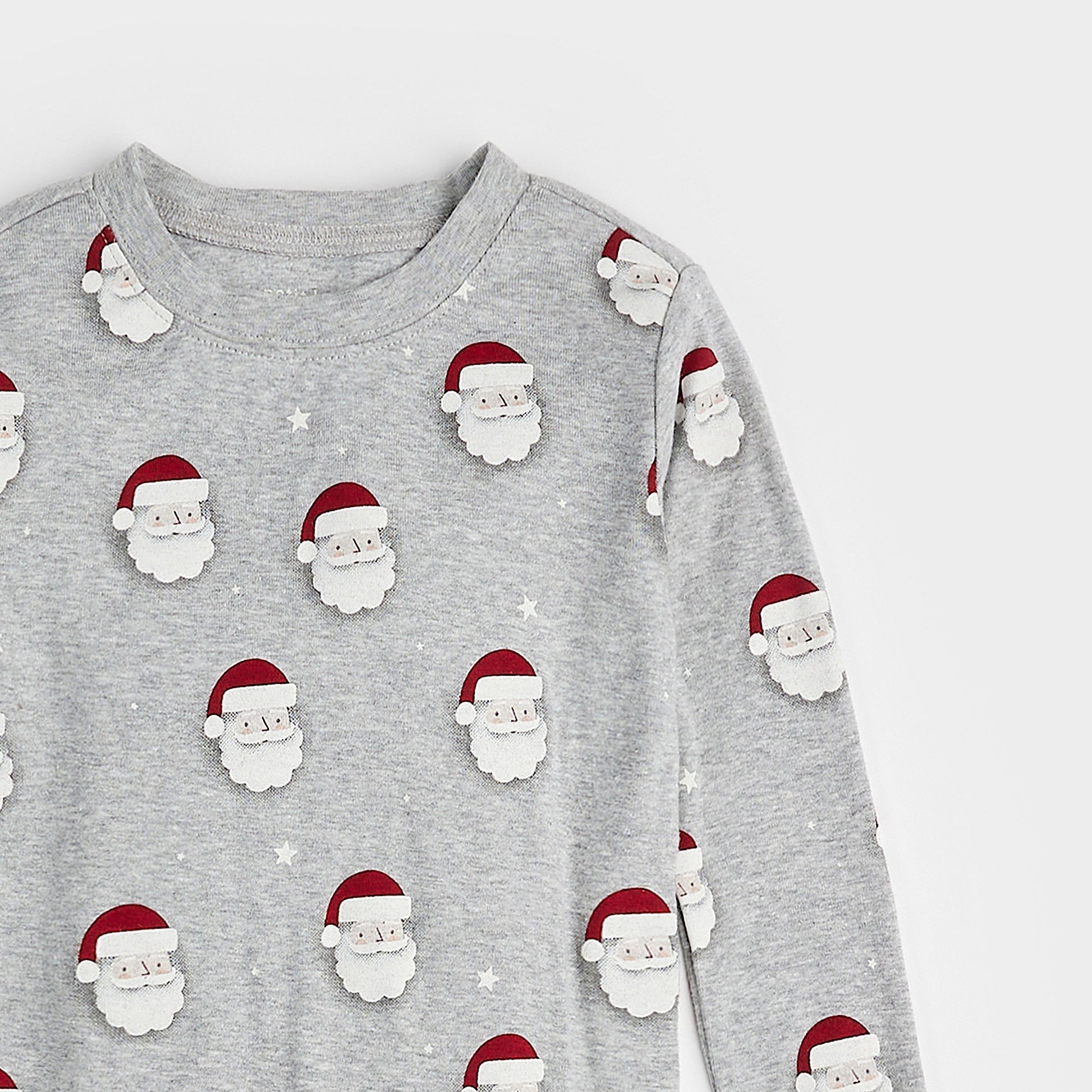 Petit Lem 2 Piece Pj Set in Santa Print on Heather Grey