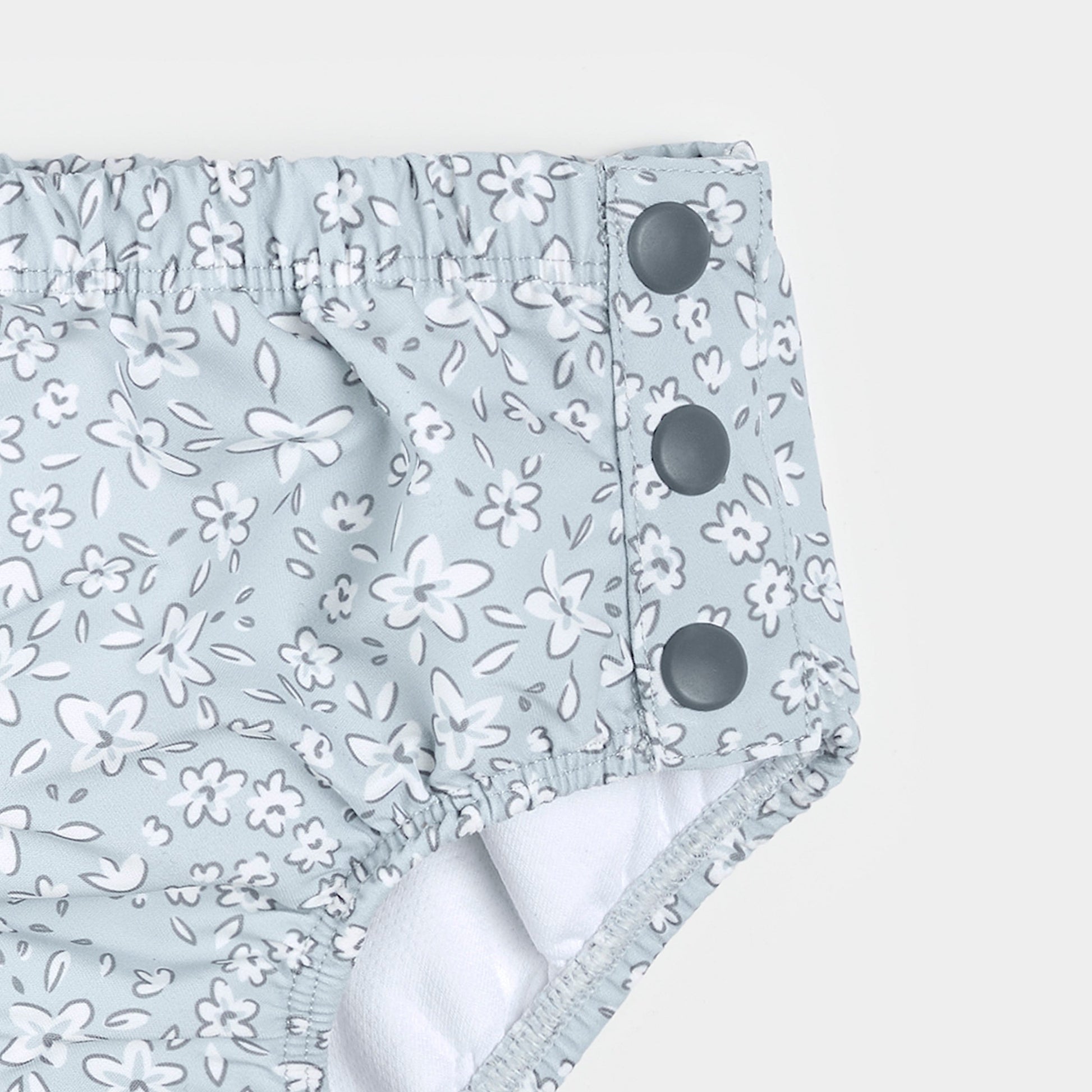 Your little swimmer will feel free and comfortable as they play in the water in this floral print swim diaper. Made with built-in UPF50+ sun protection, it’s light and comfortable and perfect for sun days. Snap buttons on both sides make diaper changing easy so they can get back to exploring the sand and sea.