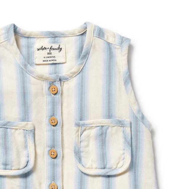 Wilson and Frenchy Organic Cotton Growsuit in Deep Blue Stripe